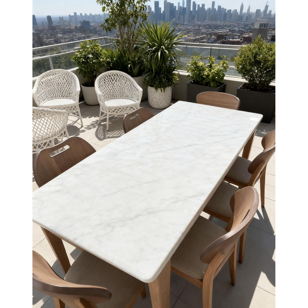 Modelul CT500 Alb este o masă dining modernă, cu un design elegant și luminos. Blatul alb tip piatră oferă un aspect premium și rafinat, ideal pentru spații moderne.